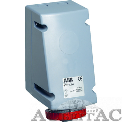 432RL6W Розетка для монтажа на поверхность с подключением шлейфа 32A, 3P+N+E, IP67, 6час ABB