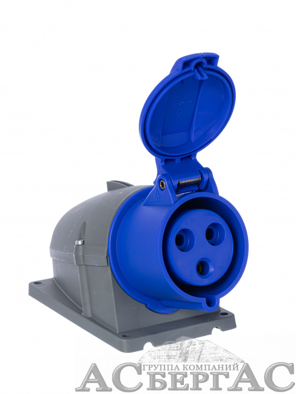 UJP Розетка приборная Schuko с крышкой 2P+E, 10/16A, 250B, IP54 цвет синий ABB