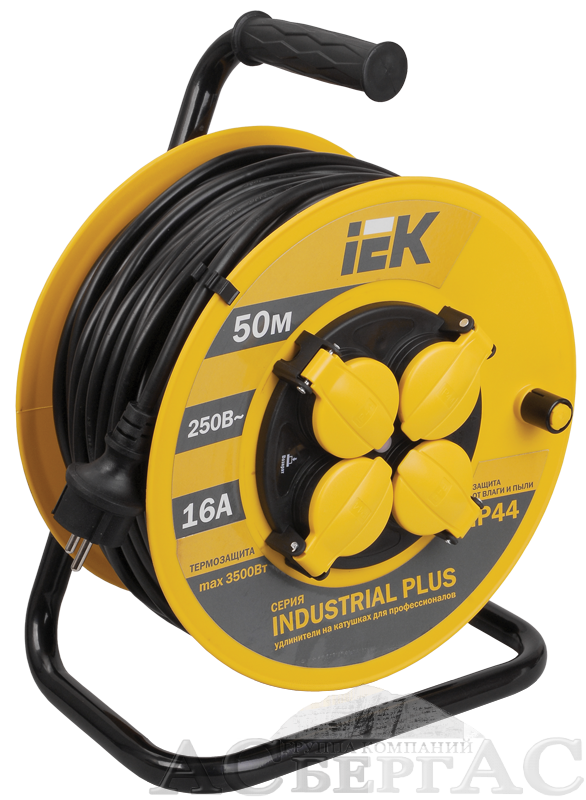 Катушка УК50 с т/з 4 места 2Р+PЕ/50метров 3х1,5мм2 IP44 "Industrial plus" ИЭК
