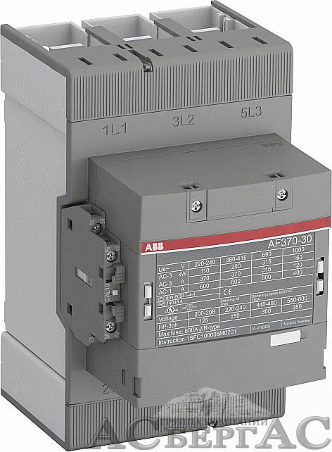 AF370-30-11-13 Контактор 3-х полюсный 370А с катушкой управления 100-250В AC/DC ABB