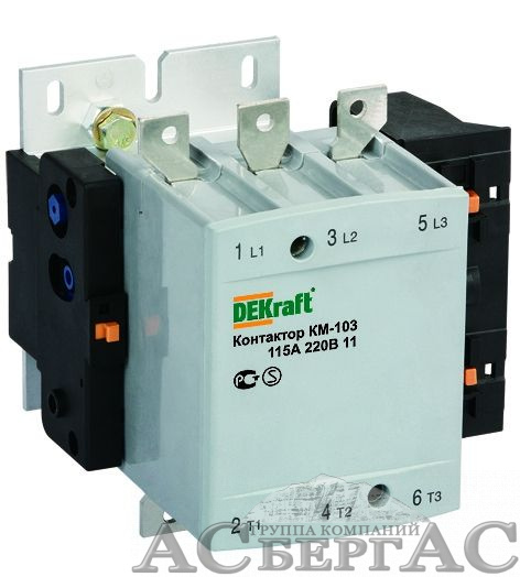 КМ103-115А-220В-00 Контактор 3-х полюсный 115А 220В АС3 1НО+1НЗ DEKraft