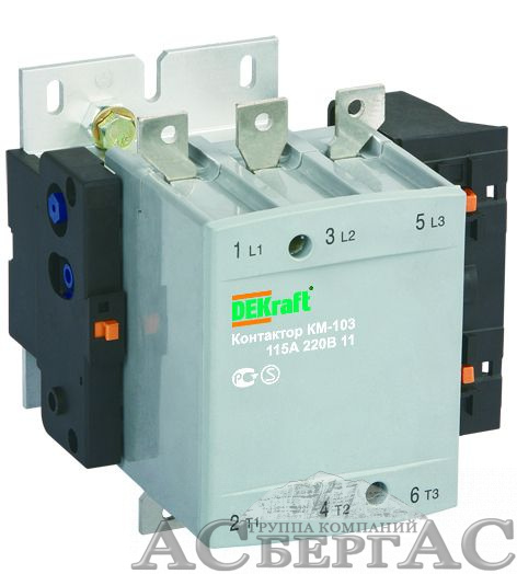 КМ103-115А-380В-00 Контактор 3-х полюсный 115А 380В АС3 1НО+1НЗ DEKraft