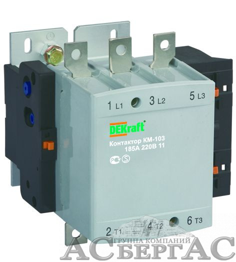 КМ103-185А-380В-00 Контактор 3-х полюсный 185А 380В АС3 1НО+1НЗ DEKraft