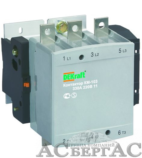 КМ103-330А-380В-00 Контактор 3-х полюсный 330А 380В АС3 1НО+1НЗ DEKraft