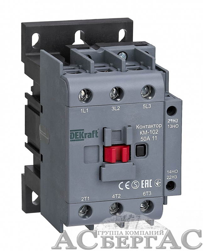 КМ102-050А-024-11 Контактор 3-х полюсный 50А 24В 1НО+1НЗ DEKraft