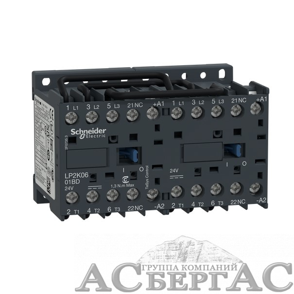 Реверсивный контактор 3-х полюсный 6A 24В 1НЗ DC Schneider Electric