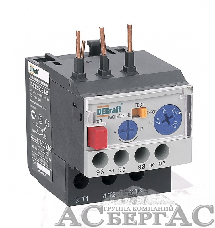 РТ-03 Реле тепловое для контакторов 9-18А, диапазон 0,35-0,50А DEKraft