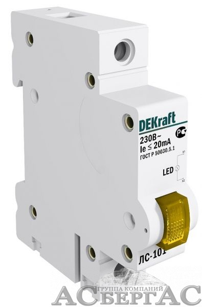 Лампа сигнальная на DIN-рейку 1P жёлтая LED LC-101, 220В DEKraft