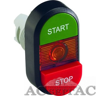 COS Кнопка двойная MPD15-11R (зеленая/красная-выступающая) красная-в ыступающая линза с текстом (START/STOP) ABB