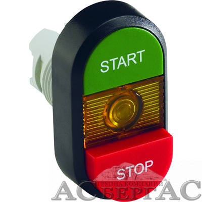 COS Кнопка двойная MPD15-11Y (зеленая/красная-выступающая) желтая ли нза с текстом (START/STOP) ABB