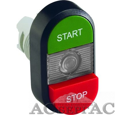 COS Кнопка двойная MPD15-11С (зеленая/красная-выступающая) прозрачна я линза с текстом (START/STOP) ABB