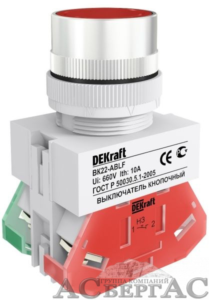 Кнопка красная потайная без подсветки ABLF 22 мм, 220В ВK-22 DEKraft