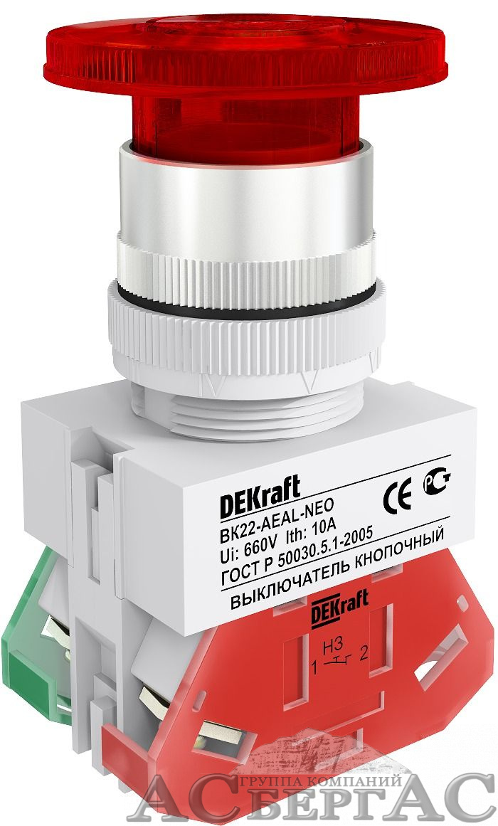 Выкл. кноп. грибок с фикс. AEAL D22 красный ВК-22 DEKraft