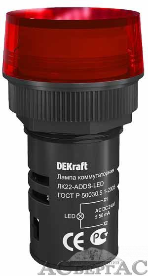 ЛК22-ADDS-RED-LED-24 Лампа коммутационная красная 22мм, LED 24В AC/DC DEKraft
