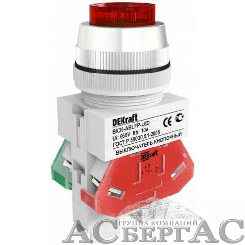 ВК22-ABLFP-GRN-LED-24 Кнопка выступающая зелёная с подсветкой 20 мм, 24В AC/DC DEKraft