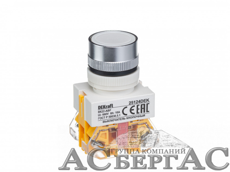 Выкл. кноп. с фикс. abf ?22 мм бел. 220в вk-22 dekraft DEKraft