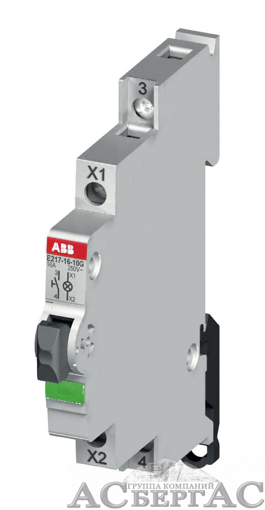E217-16-01D Кнопка зеленая с подсветкой 115-250В AC без фиксации на DIN-рейку 16А 1НЗ ABB
