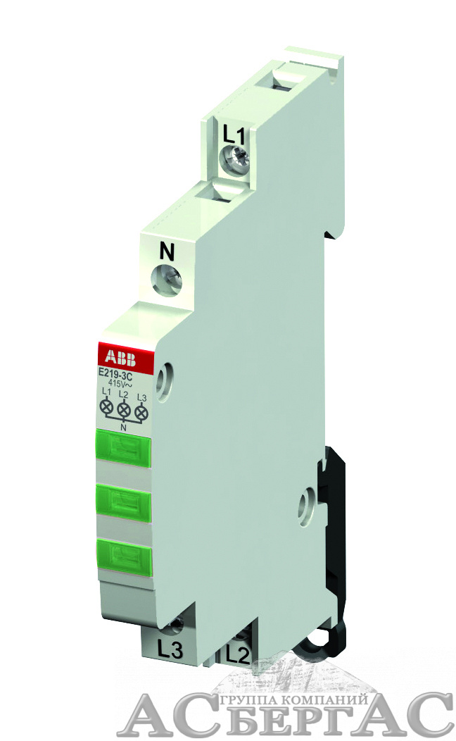 E219-3D Индикаторная лампа на DIN-рейку c 3 зелеными светодиодами 115-220В AC ABB