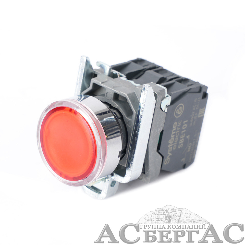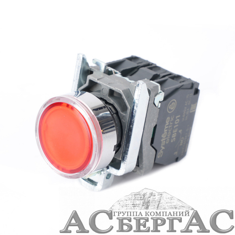 Кнопка с подсветкой в сборе модульная 22мм красная металл 24В DC 1НО+1НЗ Systeme Electric