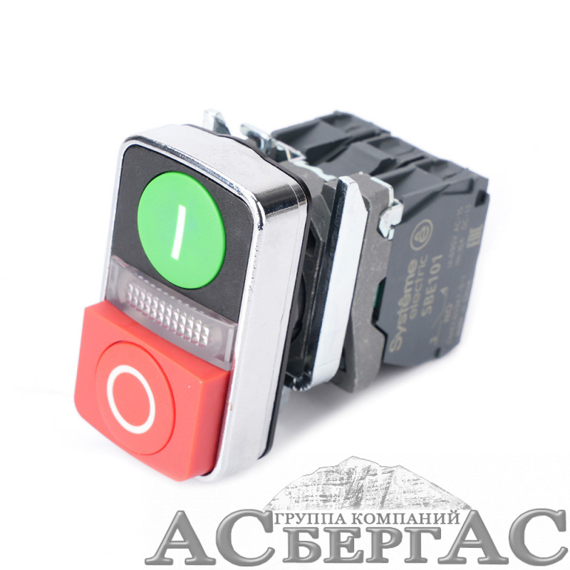 Кнопка двойнаяв сборе модуль 22мм з"I"+сиг ламп+кр выст "О" металл 24В DC 1НО+1НЗ Systeme Electric