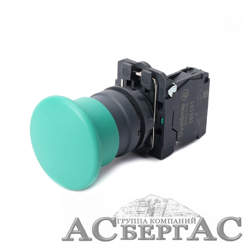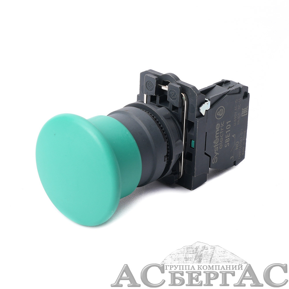 Кнопка-грибок в сборе 22мм 40мм зеленая с возвратом пластик 1НО Systeme Electric