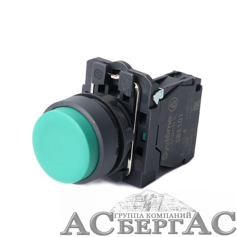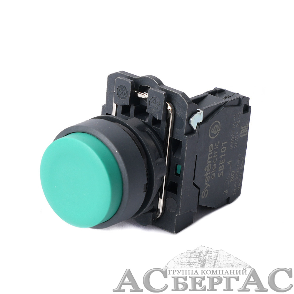 Кнопка в сборе модульная 22мм выступающая зеленая с возвратом пластик 1НО Systeme Electric