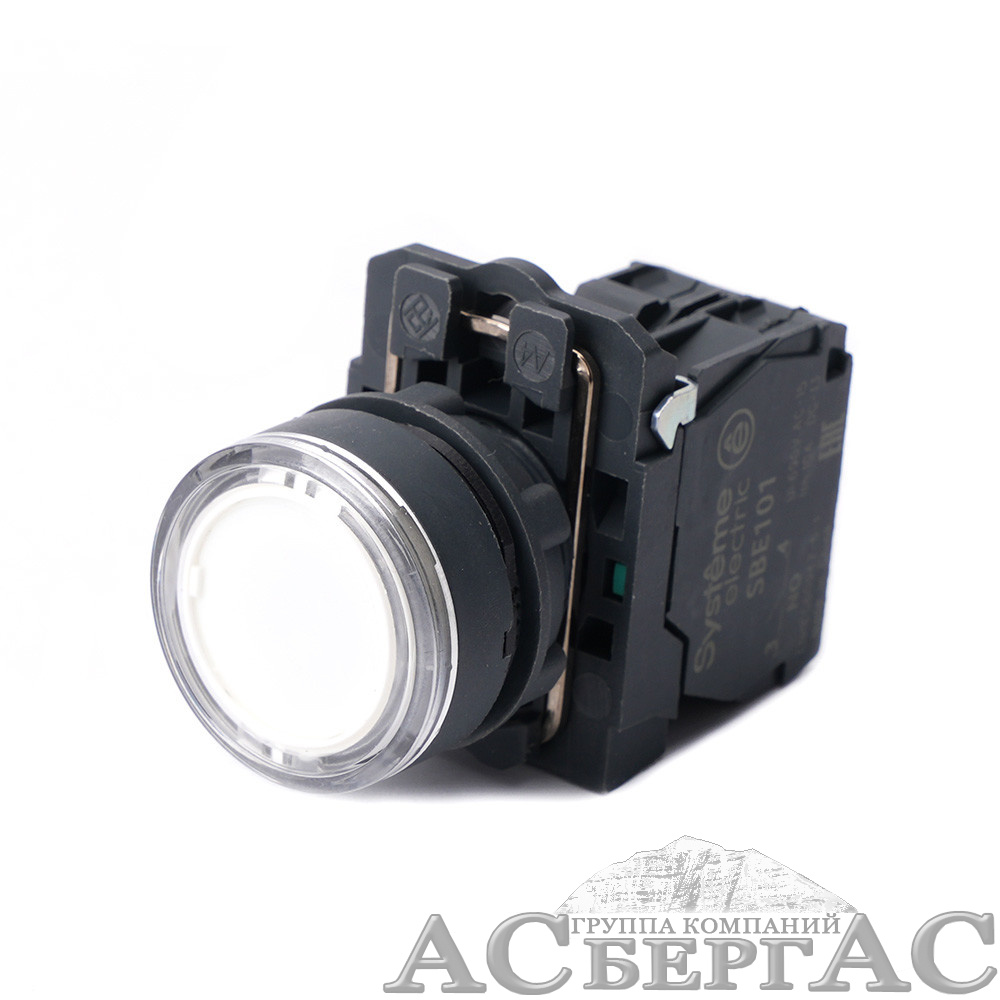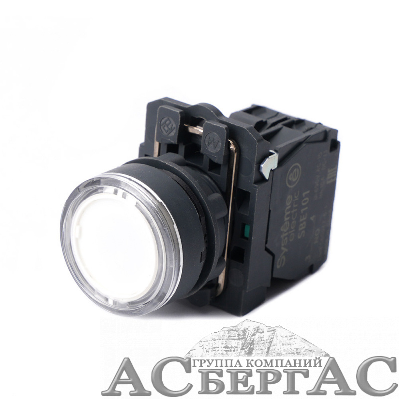 Кнопка с подсветкой в сборе модульная 22мм белая пластик 24В DC 1НО Systeme Electric