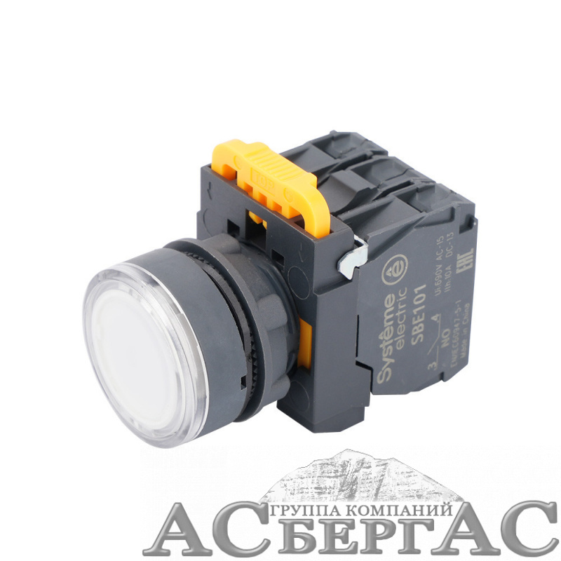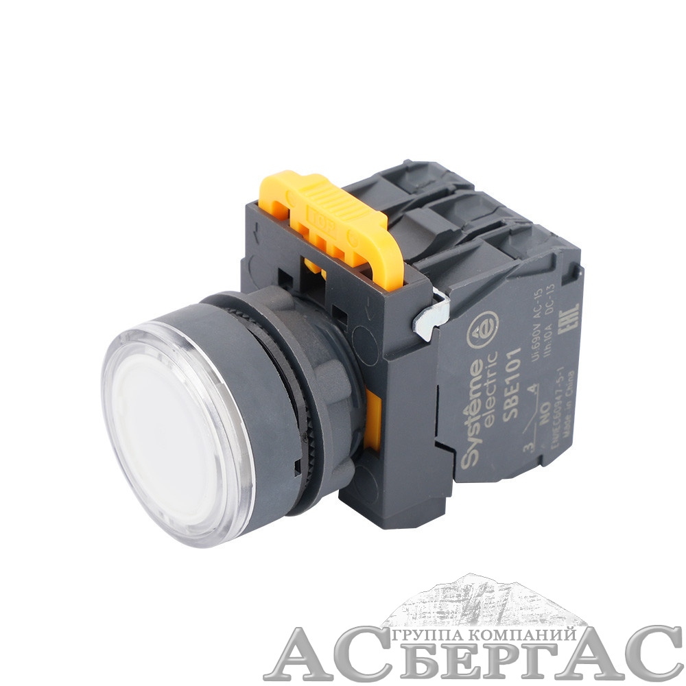 Кнопка с подсветкой в сборе модуль 22мм белая пластик 230-240В AC 1НО+1НЗ Systeme Electric