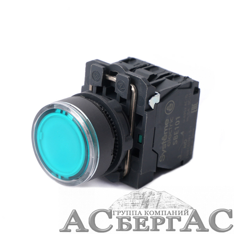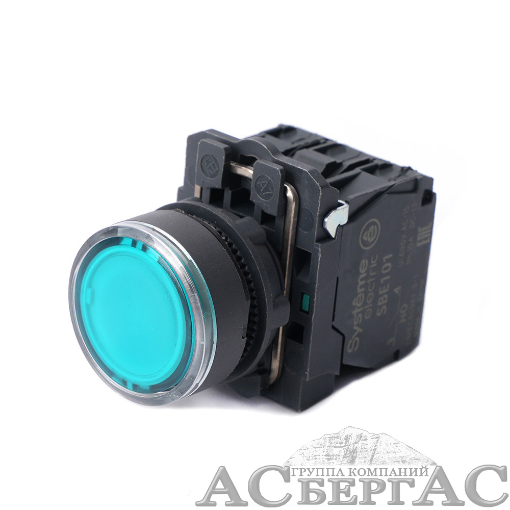 Кнопка с подсветкой в сборе модульная 22мм зеленая пластик 24В DC 1НО+1НЗ Systeme Electric
