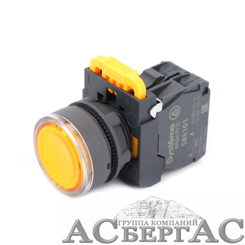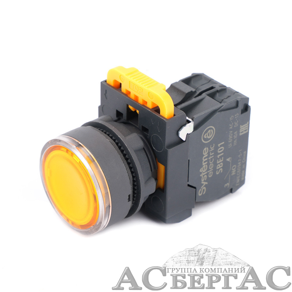 Кнопка с подсветкой в сборе модуль 22мм желтая пластик 230-240В AC 1НО Systeme Electric