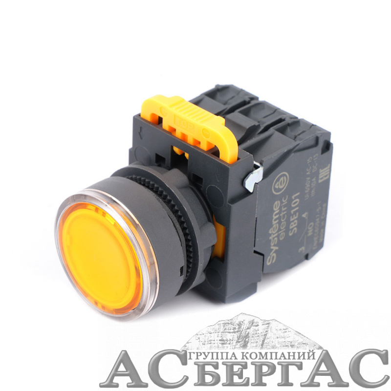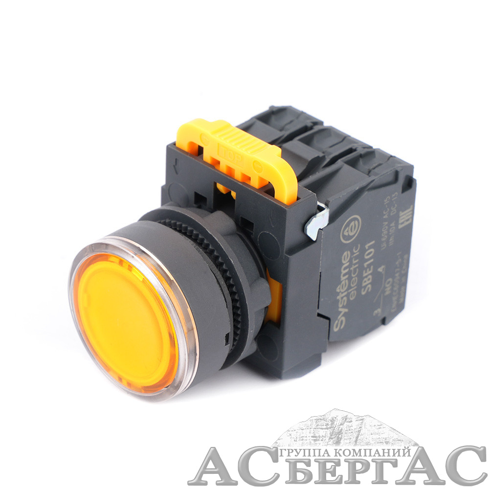 Кнопка с подсветкой в сборе модуль 22мм желтая пластик 230-240В AC 1НО+1НЗ Systeme Electric
