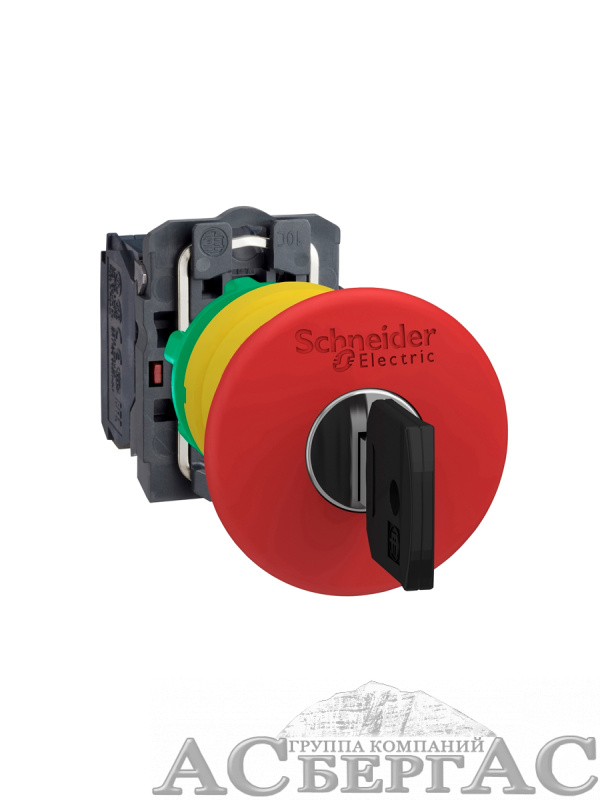Кнопка аварийного останова Ø40, Ø22 тригерного действия с ключом, 1НО+1НЗ (в сборе) Schneider Electric