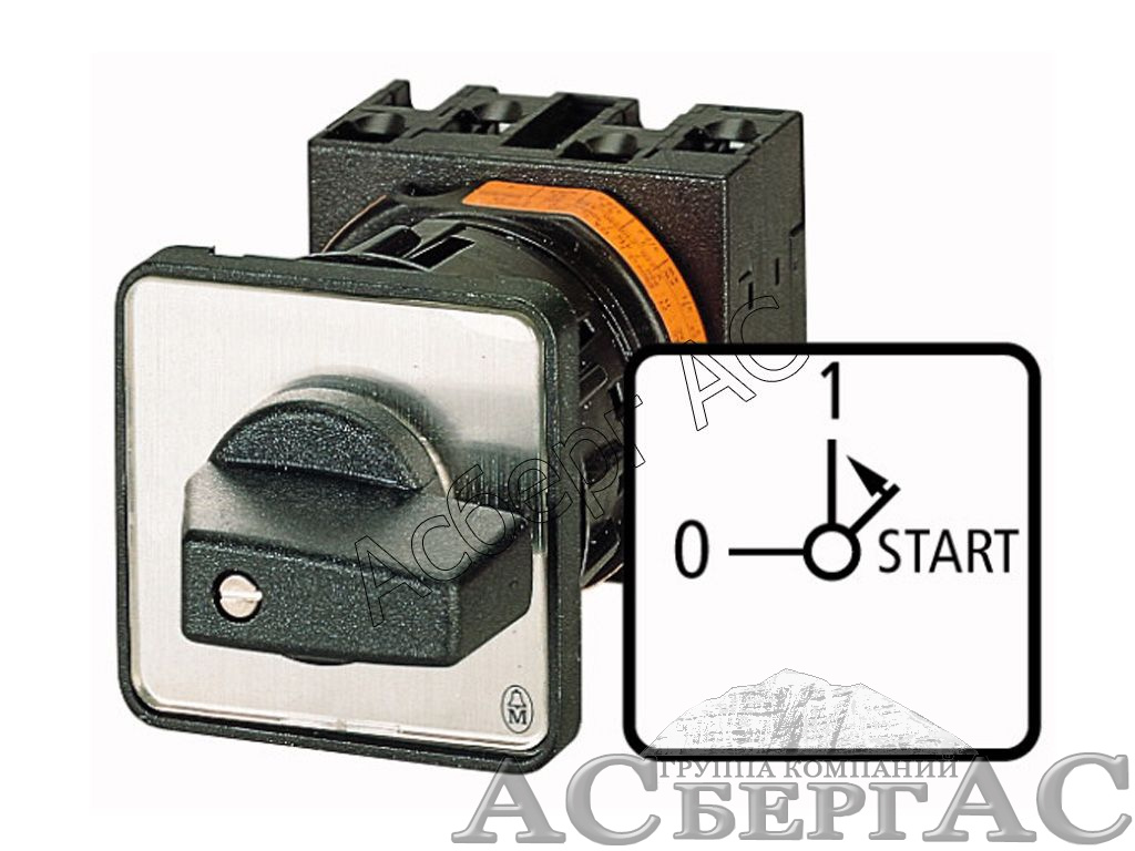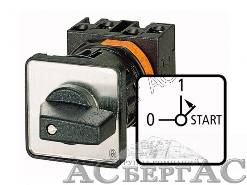 22248 T0-1-15511/EZ Переключатель управления, 2-полюсный, 12A, Пол. 0-1 < START, 90 °, 48х48 мм, пер. креп. в отверстие 22мм Eaton