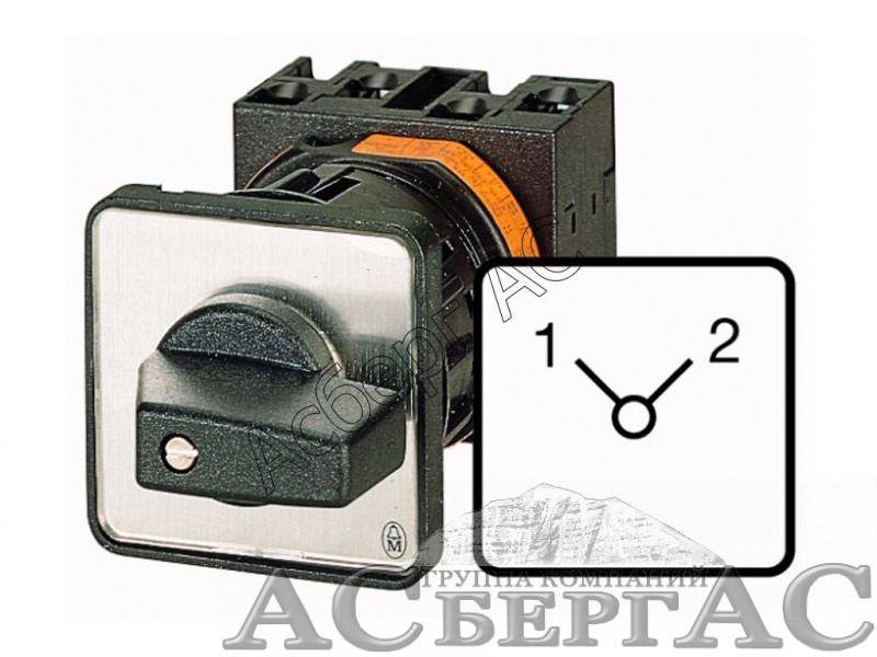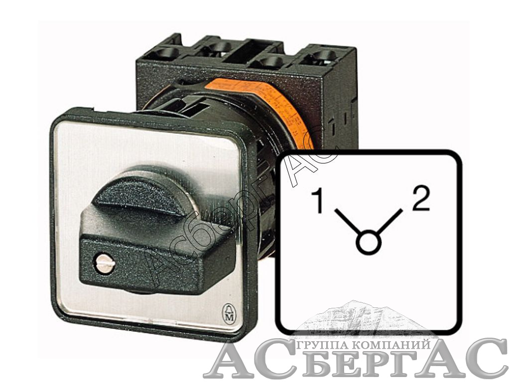 38847 T0-2-8221/E Переключатель полюсов, 2-полюсный, 12A, 1-2 Пол., 90 °, 48х48 мм, пер. креп. Eaton