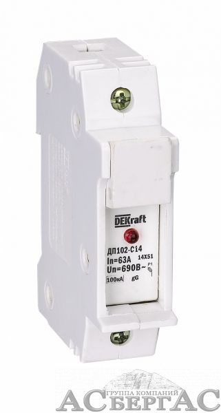 ДП102-С10-1P Выключатель-разъединитель цилиндрических предохранителей 10х38мм 1-полюсный до 32А 690В AC/DC с индикацией DEKraft