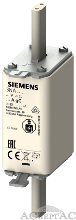 Вставка плавкая GL/GG с неизолированными выступами для монтажа/демонтажа размер 0, Iном=100А Uном=500В Siemens
