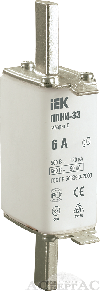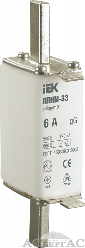 Плавкая вставка предохранителя ППНИ-33, габарит 0, 6А ИЭК