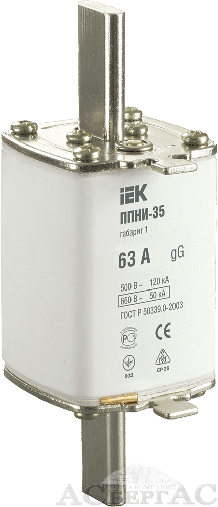 Плавкая вставка предохранителя ППНИ-35, габарит 1, 63А ИЭК