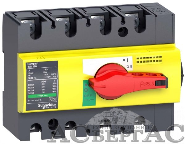 Выключатель-разъединитель Interpact INS125, 4P, 125А (с красной ручкой) Schneider Electric