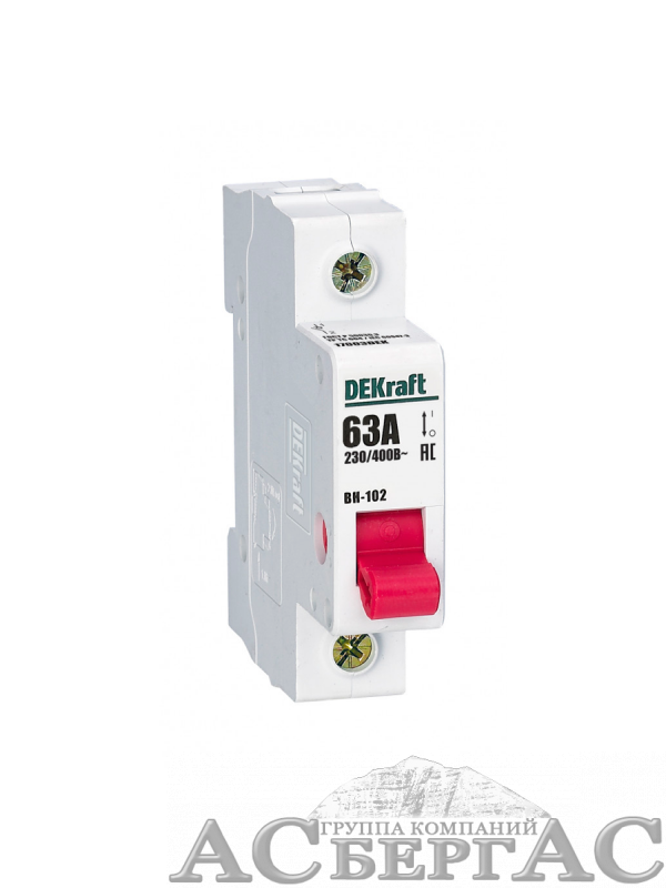 ВН102-1Р-063А Выключатель-разъединитель 1-полюсный модульный 63А DEKraft