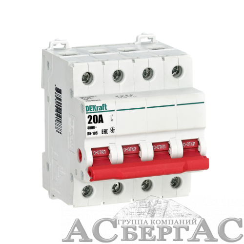 ВН-105 Рубильник 4-полюсный модульный 20А DEKraft