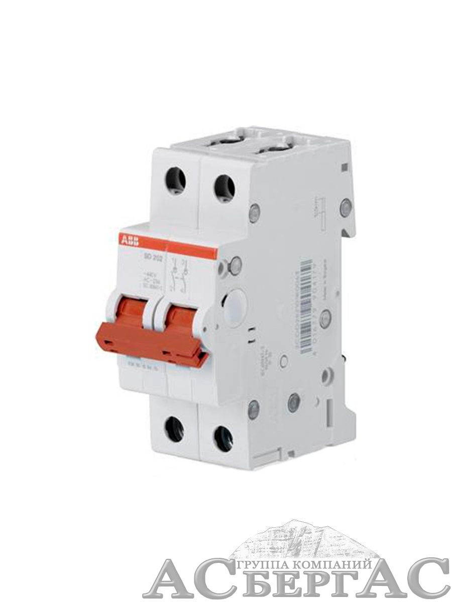 SD202/32 Рубильник 2-полюсный модульный 32А (красный рычаг) ABB