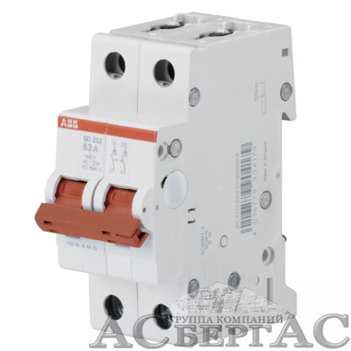 SD202/63 Рубильник 2-полюсный модульный 63А (красный рычаг) ABB