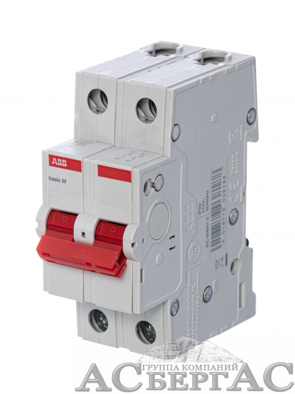 BMD51263 Рубильник 2-полюсный модульный 63А (красный рычаг) ABB