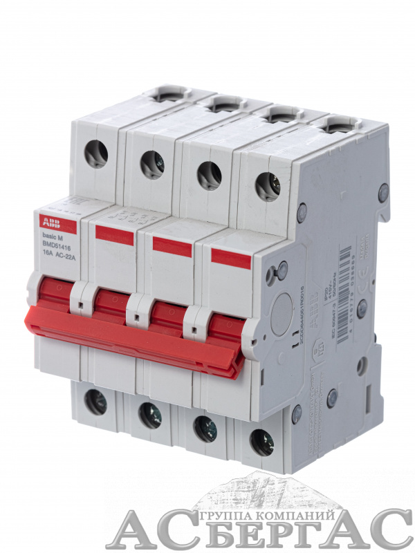 BMD51416 Рубильник 4-полюсный модульный 16А (красный рычаг) ABB