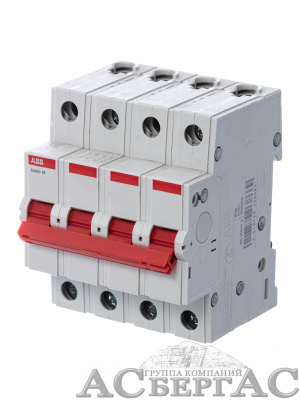 BMD51432 Рубильник 4-полюсный модульный 32А (красный рычаг) ABB