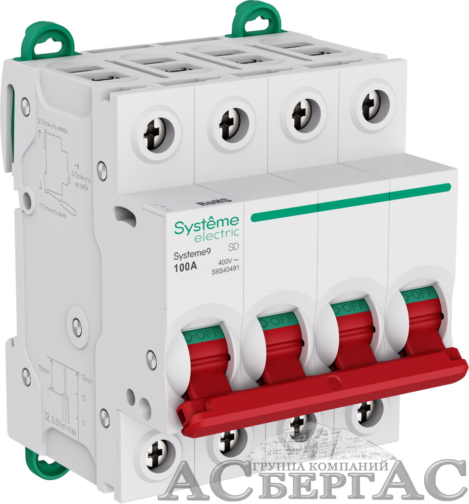 Технические характеристики и фотографии к Рубильник 4-полюсный, 100A Systeme9 Systeme Electric S9S40491 Вы можете запросить у менеджеров отдела интернет-продаж, используя для этого удобный Вам способ связи.