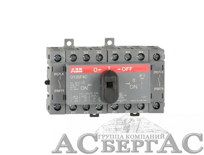 OT25F4С Реверсивный рубильник 4-х полюсный 25А (с ручкой) ABB